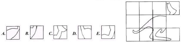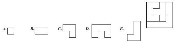 8Il quadrato che vedete sulla destra viene ritagliato secondo le linee indicate. Quale dei seguenti tasselli non può essere ottenuto in questo modo?