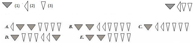 11In Mesopotamia, nel 2500 avanti Cristo, i numeri venivano scritti nel modo seguente: il simbolo (1) compariva tante volte quante erano le sessantine, il simbolo (2) compariva tante volte quante erano le decine tolte le sessantine, il simbolo (3) compariva tante volte quante erano le unità tolte le sessantine e le decine. Ad esempio, il numero 72 veniva scritto così . Quale fra le seguenti scritture rappresenta il numero 124?