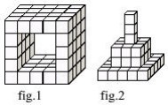 18Roberta costruisce un tunnel utilizzando solo cubetti identici fra loro (fig. 1). Quando si è stancata di quella costruzione, smonta il tunnel e costruisce una piramide (fig. 2). Quanti cubetti usati nel tunnel non sono stati utilizzati per costruire la piramide?