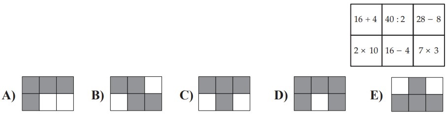 3In ogni cella della griglia che vedi qui a fianco è indicata un’operazione. Antonio ombreggia tutte le celle contenenti un’operazione il cui risultato è 20. Quale delle seguenti forme ottiene?