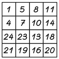 5Sonia traccia col gesso sul pavimento la grande tabella che vedi a lato, poi incomincia a saltare da una cella all’altra. Parte dalla cella numero 1 e segue questa regola: a ogni nuovo salto, atterra in una cella con un numero che è di 3 unità maggiore di quello della cella da cui ha spiccato il salto. Qual è il numero presente nell’ultima cella su cui potrà atterrare?