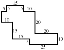 19Il giardino di Pamela ha la forma mostrata nella figura a fianco. Tutti gli angoli sono retti (90°), e le lunghezze dei singoli lati sono espresse in metri. Allora l'area del giardino, in metri quadrati, vale