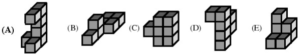29Tutti i solidi seguenti, ottenuti accostando cubetti tutti uguali fra loro, hanno lo stesso volume. Quale ha la superficie totale maggiore?