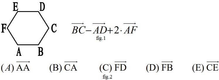 15ABCDEF è un esagono regolare. Allora il vettore (fig.1) coincide con il vettore (fig.2):