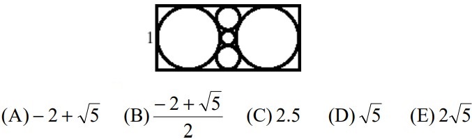 21Trova la lunghezza del lato maggiore del rettangolo presentato nella figura (il lato minore misura 1), sapendo che le figure rotonde sono tutte cerchi.