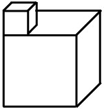 8Il solido in figura è formato da due cubi. Il più piccolo, il cui lato è lungo 1 centimetro, è interamente appoggiato sulla faccia superiore del cubo più grande il cui lato misura 3 centimetri. Quanto misura, in centimetri quadrati, la superficie totale del solido?